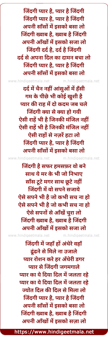 Lyrics of Zindagi Pyar Hai, Pyar Hai Jindagi - जिंदगी प्यार है, प्यार है जिंदगी