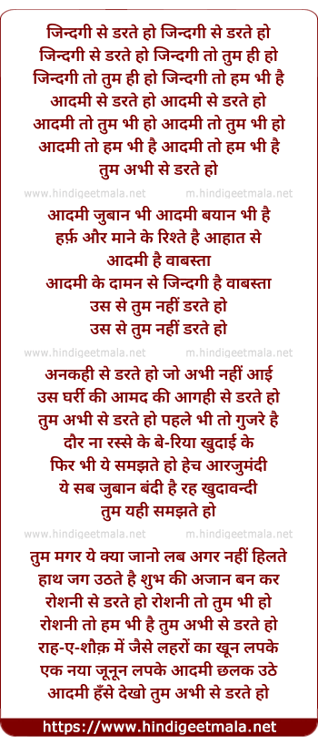 Lyrics of Zindgi Se Darte Ho - जिन्दगी से डरते हो जिन्दगी से डरते हो