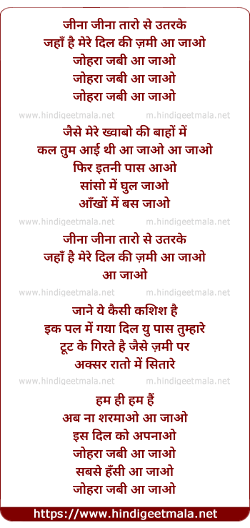 Lyrics of Zohra Jabeen Aa Jao - जोहरा जबी आ जाओ