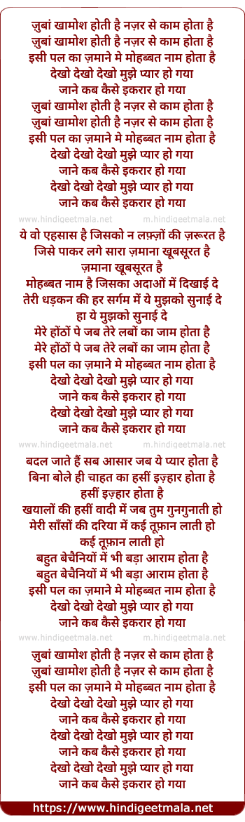 Lyrics of Zubaan Khaamosh Hoti Hai - ज़ुबां खामोश होती है