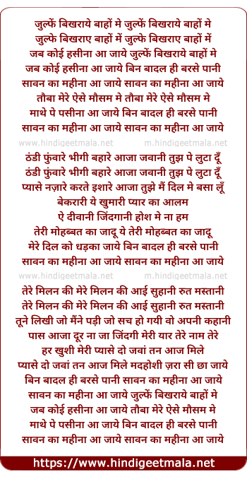 sawan ka mahina aa jaye zulfe bikhraye baaho me