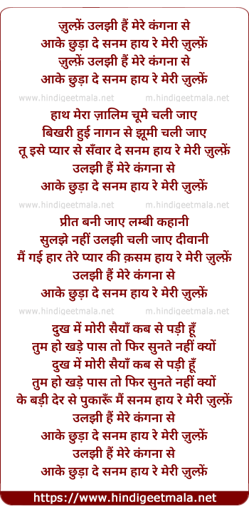 Lyrics of Zulfen Ulajhi Hain Mere Kanganaa Se - ज़ुल्फ़ें उलझी हैं मेरे कंगना से