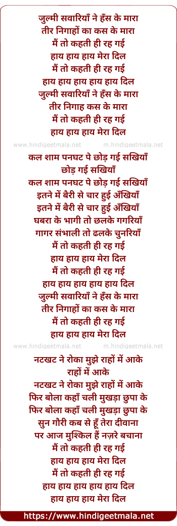 Lyrics of Zulmi Sawariya Ne Has Ke Mara - जुल्मी सावरियां ने हँस के मारा