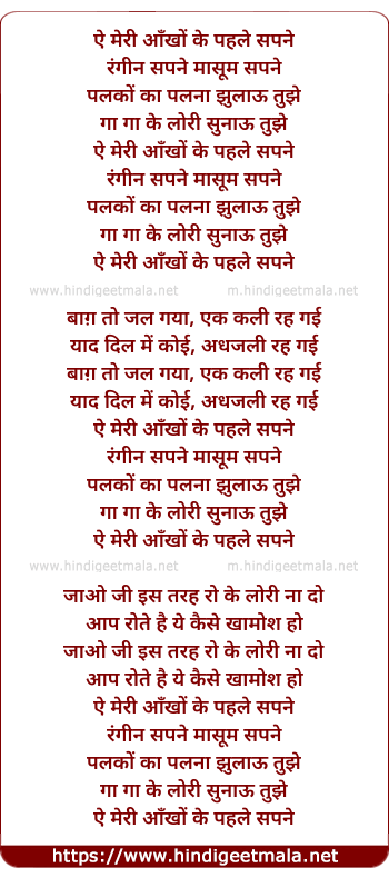 Lyrics of A Meri Aankhon Ke Pehele Sapne (Sad) - ऐ मेरी आँखों के पहले सपने