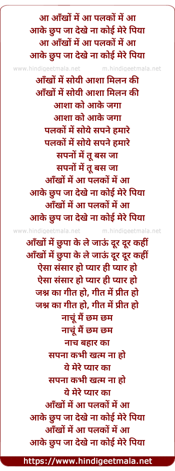 Lyrics of Aa Ankho Me Aa Palko Me - आ आँखों में आ पलकों में आ