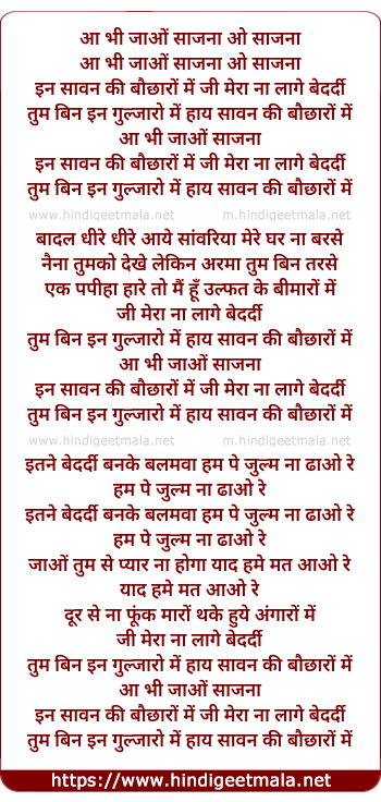 Lyrics of Aa Bhi Jao Saajna - आ भी जाओं साजना