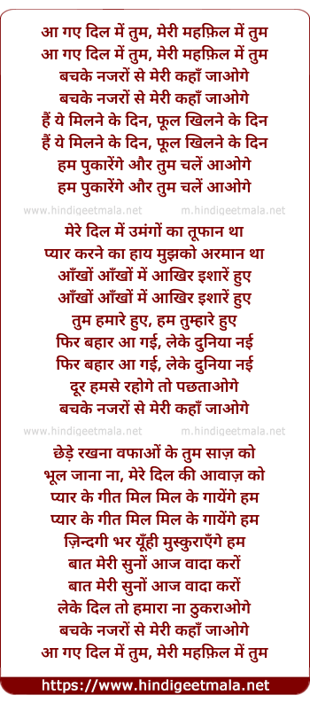 Lyrics of Aa Gaye Dil Me Tum Meri (2) - आ गए दिल में तुम, मेरी