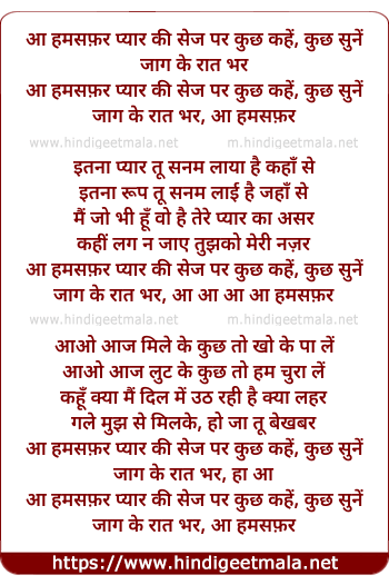Lyrics of Aa Hamasafar, Pyaar Ki Sej Par, Kuchh Kahen Kuchh Sunen - आ हमसफ़र, प्यार की सेज पर, कुछ कहें कुछ सुनें