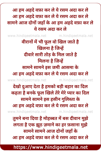 Lyrics of Aa Hum Ahde Wafa Kar Le - आ हम अहदे वफ़ा कर ले