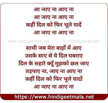 Lyrics of Aa Jaaye Na Aaye Kahi Dil Ko - आ जाए ना आए कहीं दिल को