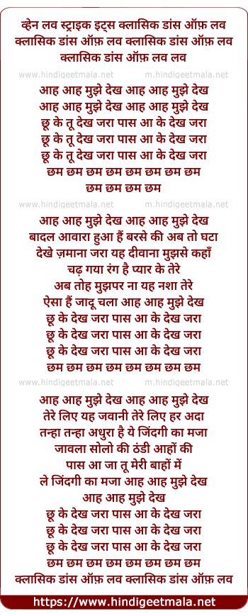 Lyrics of Aa Mujhe Dekh, Chu Ke Tu Dekh Jara - आ मुझे देख, छू के तू देख जरा