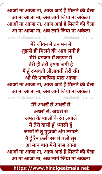 Lyrics of Aa Na Aaja Na Ab - आ ना आजा ना अब