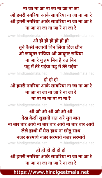Lyrics of Aa Na Ja Humari Nagariya Aa Ke