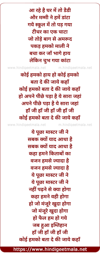 Lyrics of Aa Rahe Ghar Me To Daddy - आ रहे है घर में तो डैडी