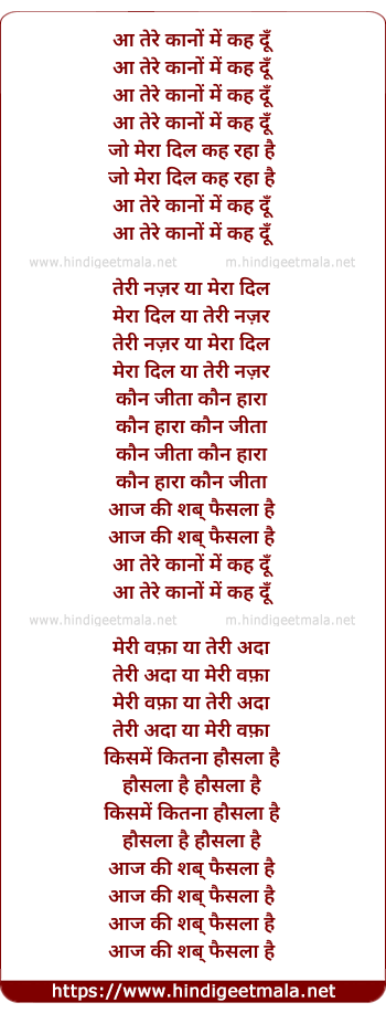 Lyrics of Aa Tere Kano Mein Keh Du - आ तेरे कानों में कह दूँ