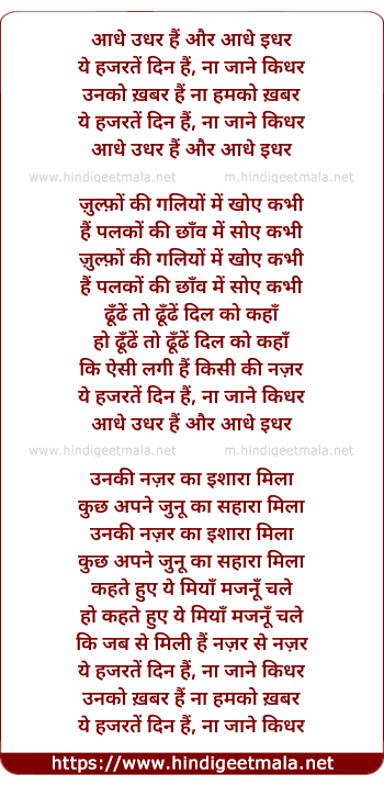 Lyrics of Aadhe Udhar Hain Aadhe Idhar - आधे उधर हैं और आधे इधर