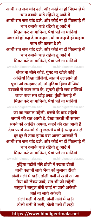 Lyrics of Aadhee Raat Jab Chaand Dhale - आधी रात जब चांद ढ़ले