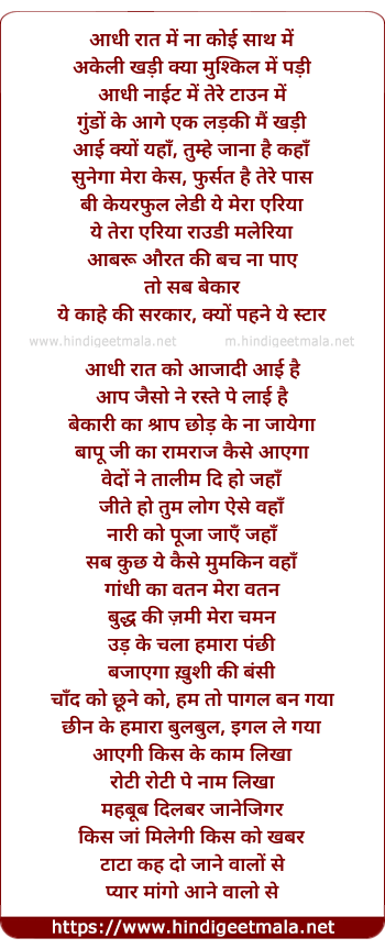 Lyrics of Aadhi Night Me - आधी नाईट में
