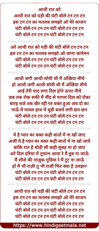 Lyrics of Aadhi Raat Ko Ghadi Ki Ghanti - आधी रात को घड़ी की घंटी