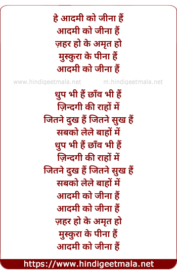 Lyrics of Aadmi Ko Jeena Hai - आदमी को जीना हैं