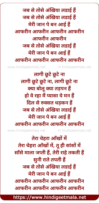 Lyrics of Aafreen Aafreen - आफरीन आफरीन