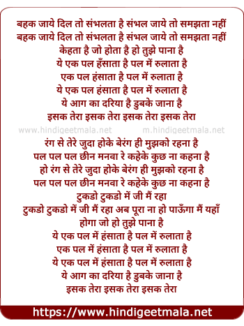 pal pal pal chhin manva re kaheke kuchh naa kehna hai