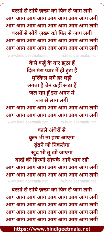 Lyrics of Aag Lagi - बरसों से सोये ज़ख्म को फिर से जाग लगी
