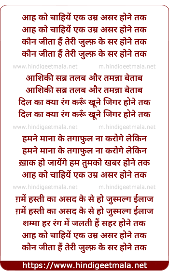 Lyrics of Aah Ko Chahiye Ek Umar Asar Hone Tak - आह को चाहियें एक उम्र असर होने तक