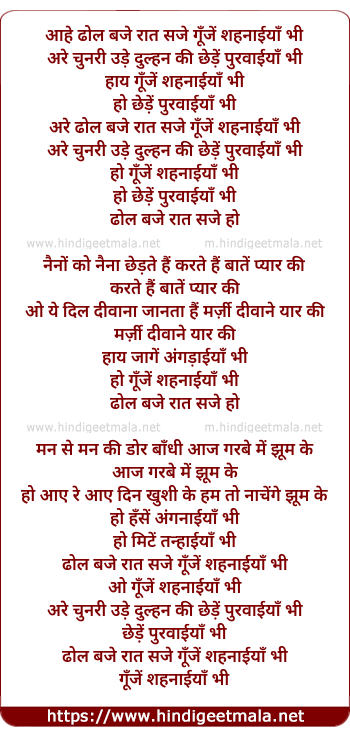 aahe dhol baje raat saje gunje shahnaiya bhi
