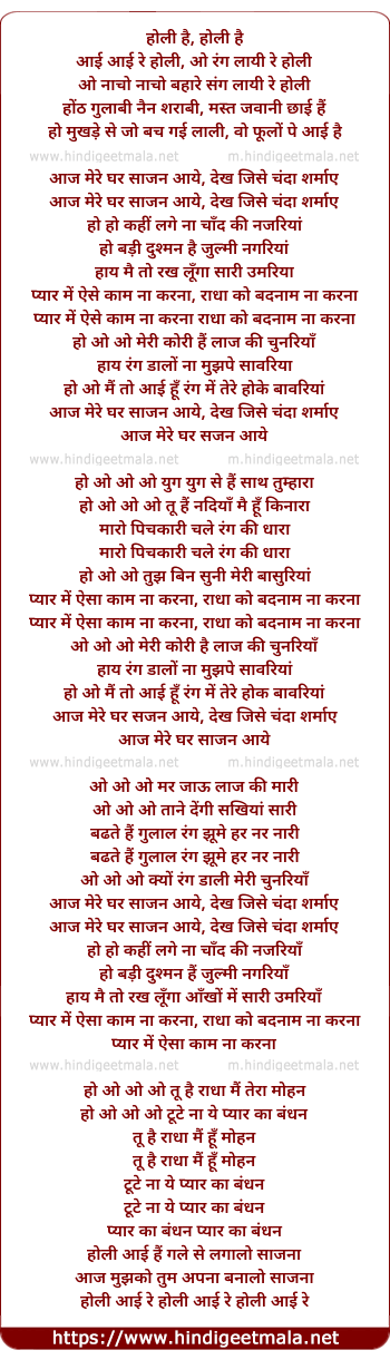 Lyrics of Aai Aai Re Holi - आई आई रे होली