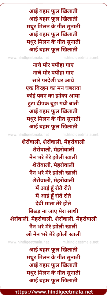 Lyrics of Aai Bahar Phool Khilati - आई बहार फूल खिलाती