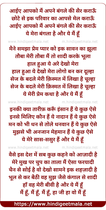 Lyrics of Aaie Aapako Main Apane Bangale Ki Sair Karaaun - आईये आपको मैं अपने बंगले की सैर कराऊँ