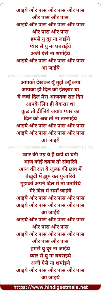 Lyrics of Aaiye Aurr Paas - आइये और पास