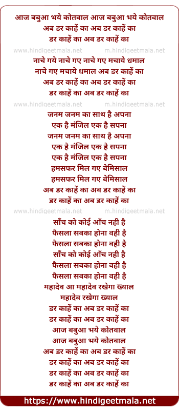 Lyrics of Aaj Babua Bhaye Kotwal - आज बबुआ भये कोतवाल
