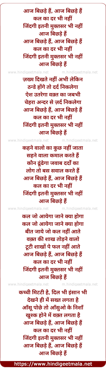Lyrics of Aaj Bichade Hain - आज बिछड़े हैं