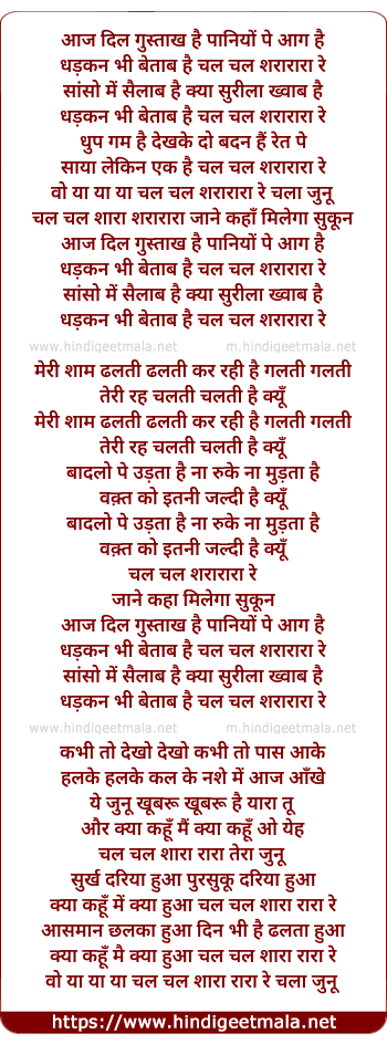 Lyrics of Aaj Dil Gustaakh Hai - आज दिल गुस्ताख है