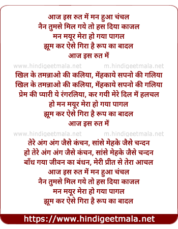 Lyrics of Aaj Is Rut Me - आज इस रुत में