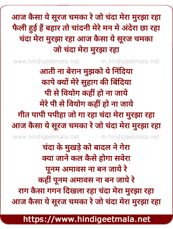aaj kaisa ye suraj chamka re jo chanda mera murjha rha
