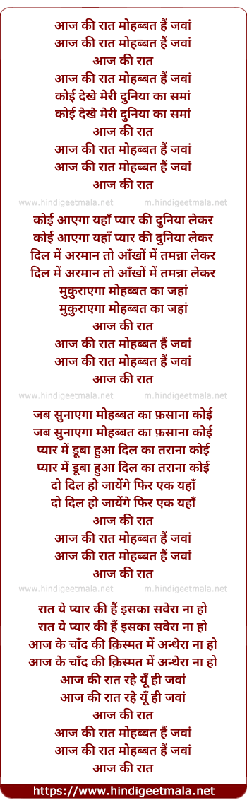 Lyrics of Aaj Ki Raat Mohabbat Hai - आज की रात मोहब्बत हैं जवां