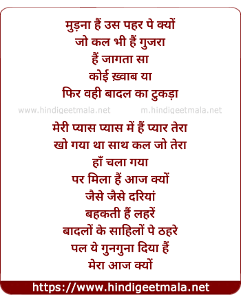 Lyrics of Aaj Kyon - मुड़ना हैं उस पहर पे क्यों