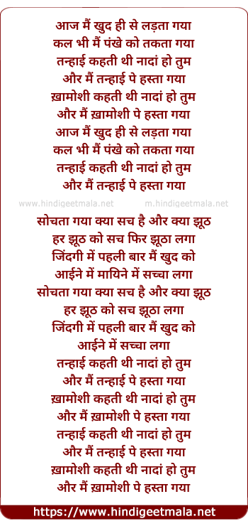Lyrics of Aaj Mai Khud Hi Se - आज मैं खुद ही से लड़ता गया