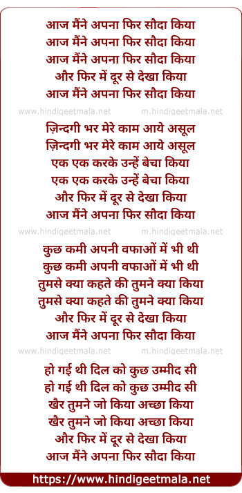 Lyrics of Aaj Maine Apna Phir - आज मैंने अपना फिर सौदा किया