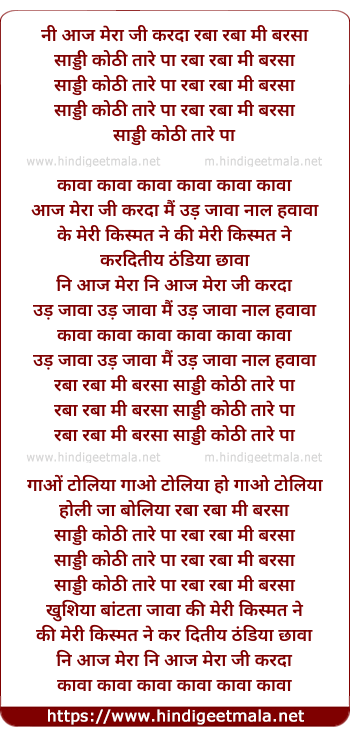 ke ajj mera jee kardaa...rabba rabba meen barsa...saddi kothe daane pa..ke