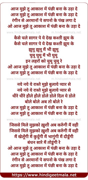 aaj mujhe tu aakash me panchhi bana ke uda de