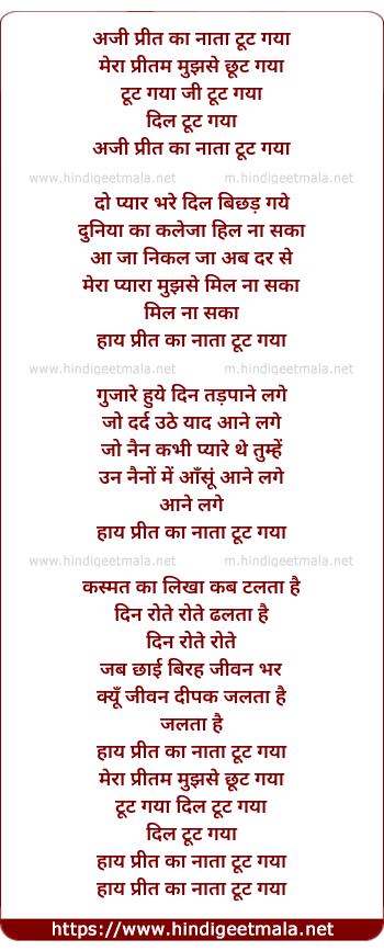 Lyrics of Aji Preet Ka Naata Toot Gaya - अजी प्रीत का नाता टूट गया