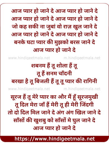 Lyrics of Aaj Pyar Ho Jane De - आज प्यार हो जाने दे