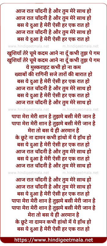 Lyrics of Aaj Raat Chandni Hai - आज रात चाँदनी है
