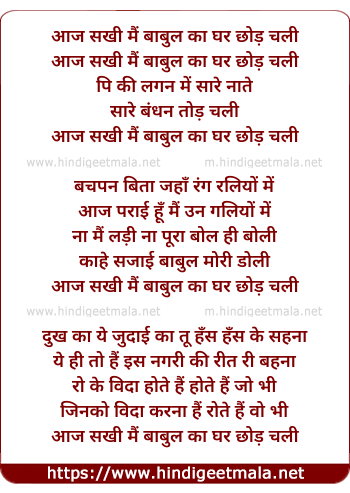 Lyrics of Aaj Sakhi Mai Babul Ka Ghar - आज सखी मैं बाबुल का घर