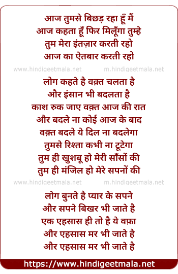 Lyrics of Aaj Tum Se Bichhad Raha Hu - आज तुम से बिछड़ रहा हूँ