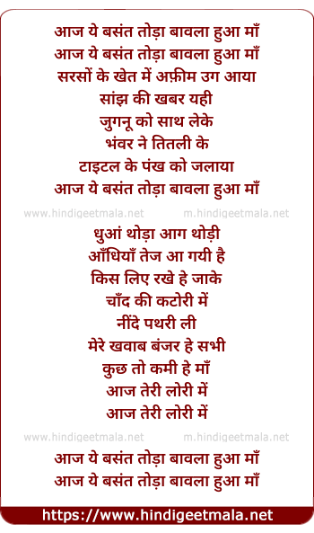 Lyrics of Aaj Yeh Basant (Female) - आज यह बसंत (फीमेल )